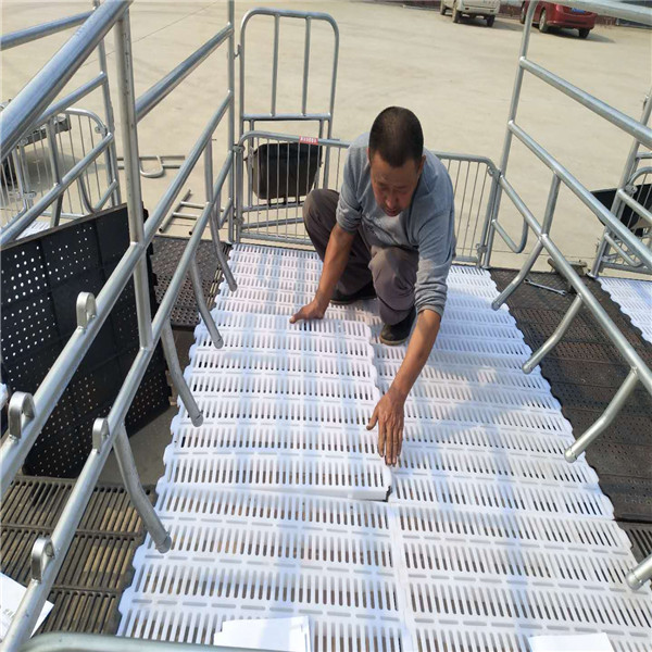 高培保育床:規(guī)格:3600*2200 給豬選擇地板的時候一般母豬是復(fù)合,或者塑料地板,仔豬是塑料地板,目前也有仔豬采用鑄鐵地板,需要根據(jù)不同的氣候環(huán)境進行選擇?! 「吲啾S驳拇驳撞捎梅篮箖鍪炷z漏糞地板,框架采用鍍鋅管與球墨鑄鐵杠梁而成。整體防腐處理可采用鍍鋅管,腿為鑄鐵人字形。