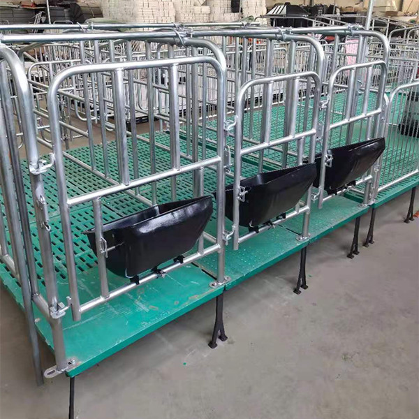 母豬高床定位欄是為懷孕母豬產(chǎn)床設(shè)計(jì)的圍欄,每套定位欄可以供10頭母豬使用,也可以連體安裝,母豬定位欄配帶加厚鋼板食槽,也可以換不銹鋼食槽,但是需要補(bǔ)差價(jià),母豬高床定位欄,下面使用復(fù)合材質(zhì)漏糞板,前面使用半漏式,防止母豬吃飼料的時(shí)候掉在地上浪費(fèi),后面使用全漏式,方便母豬漏糞,下面使用鑄鐵腿子,四孔腿在中間一排,兩孔腿子分別在前面一排和后面一排,整體安裝方便簡單,定位欄因?yàn)榭勺龅蕉〞r(shí)定量、占用空間小和便于管理受到大多數(shù)豬場的認(rèn)可。由于長期的不正確選育,外來種豬的母性被降低,在其活動(dòng)過程中很容易壓死仔豬。為了降低了母豬壓死仔豬的可能性,現(xiàn)在大多數(shù)豬場采用定位欄限制了母豬的運(yùn)動(dòng)。采用定位欄,不但母豬發(fā)生褥瘡和肩部潰瘍的可能性進(jìn)一步加大,同時(shí),也降低了仔豬對(duì)母豬的繼承免疫。